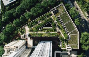 Installasjon av rotsperre, dreneringslag, vekstmedium og vegetasjon